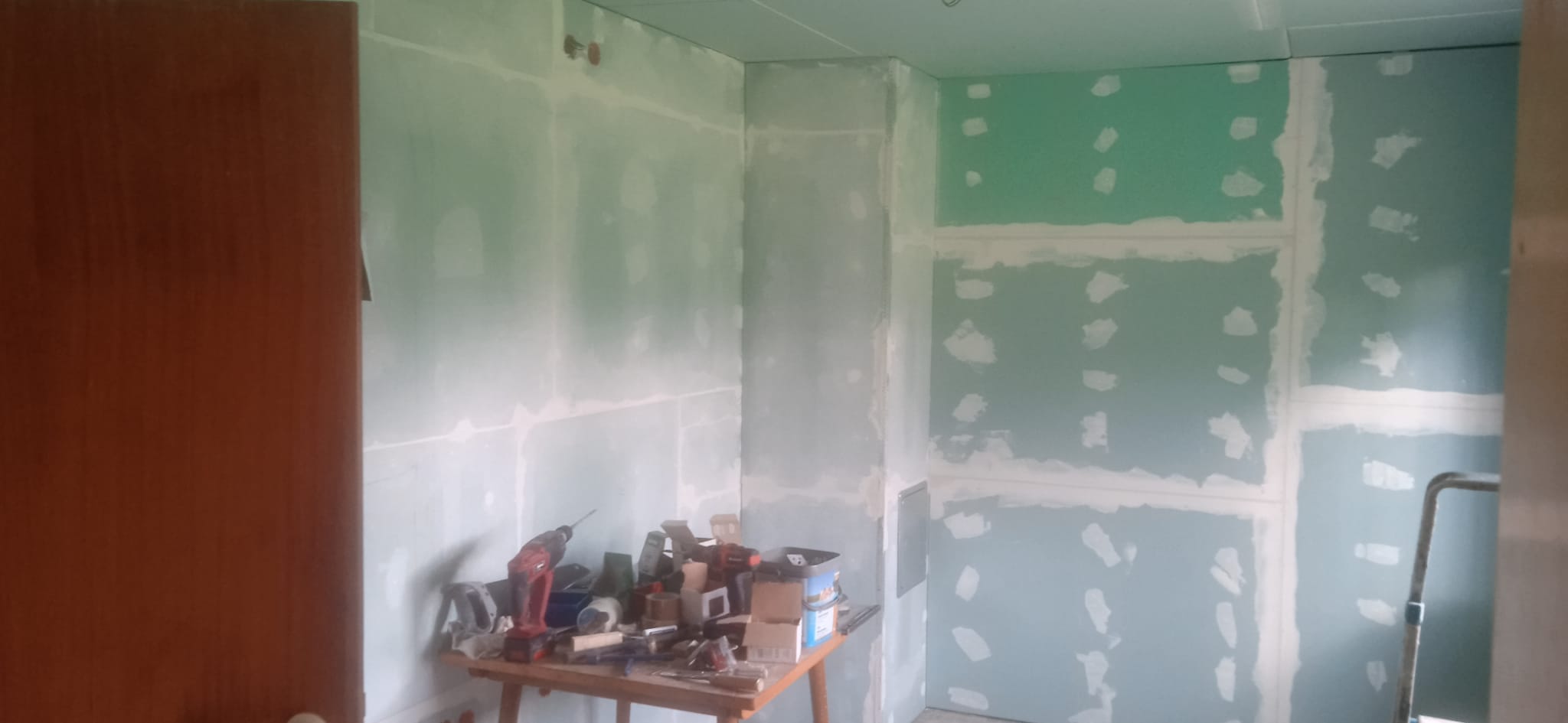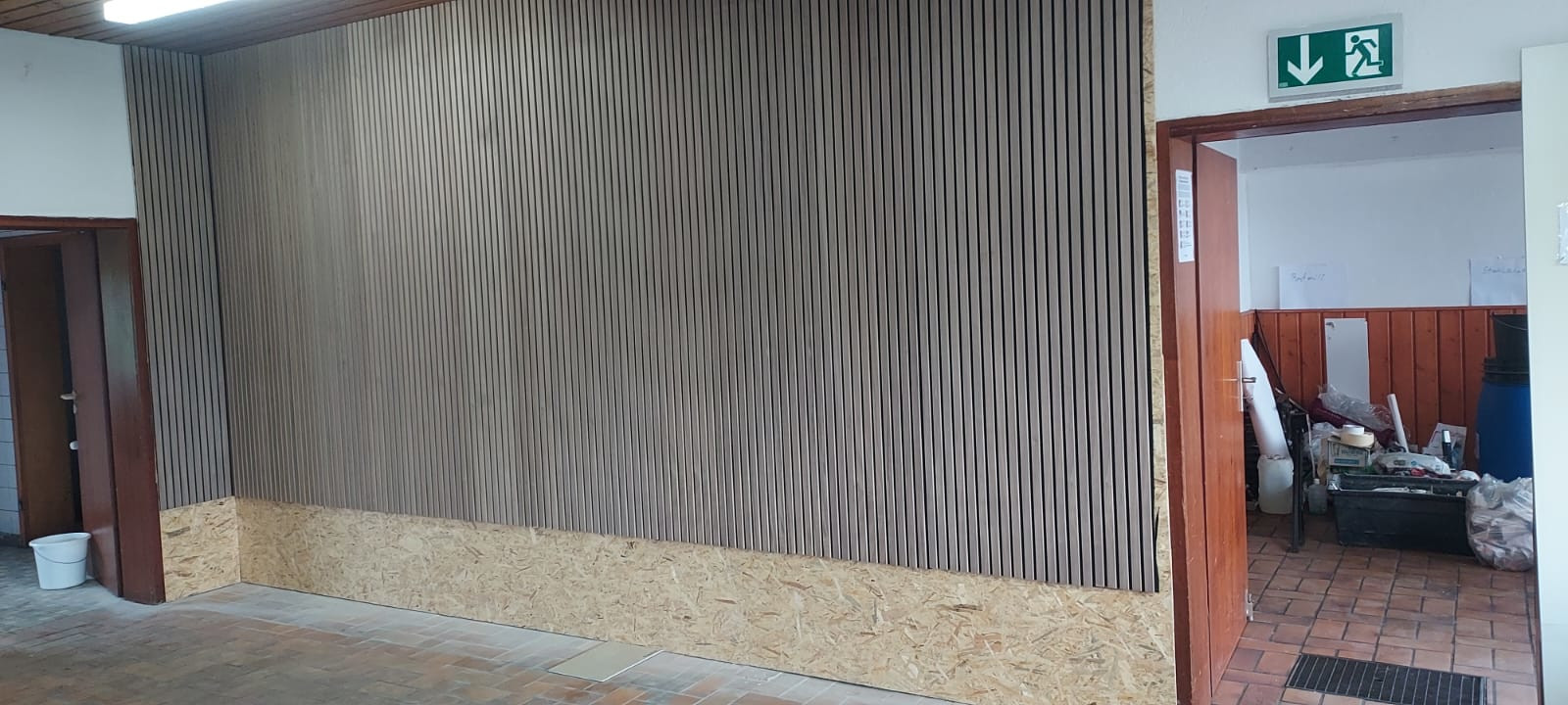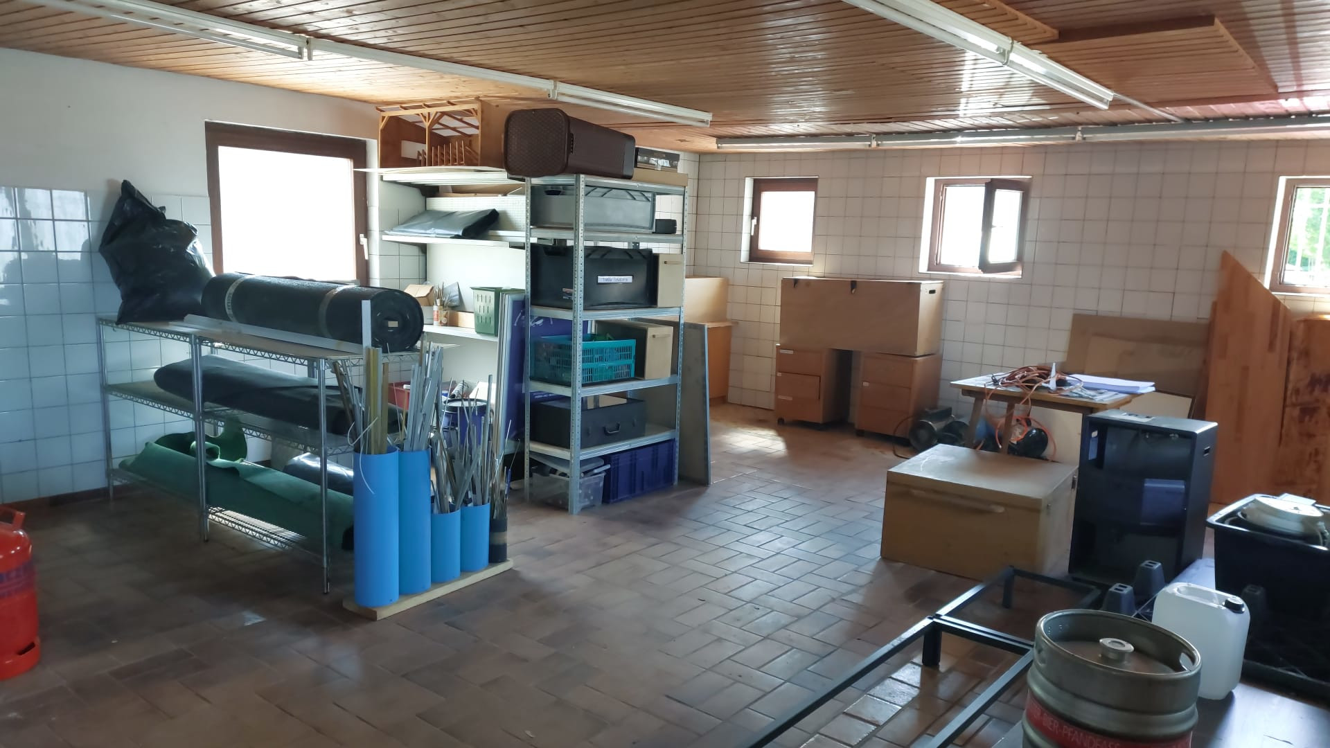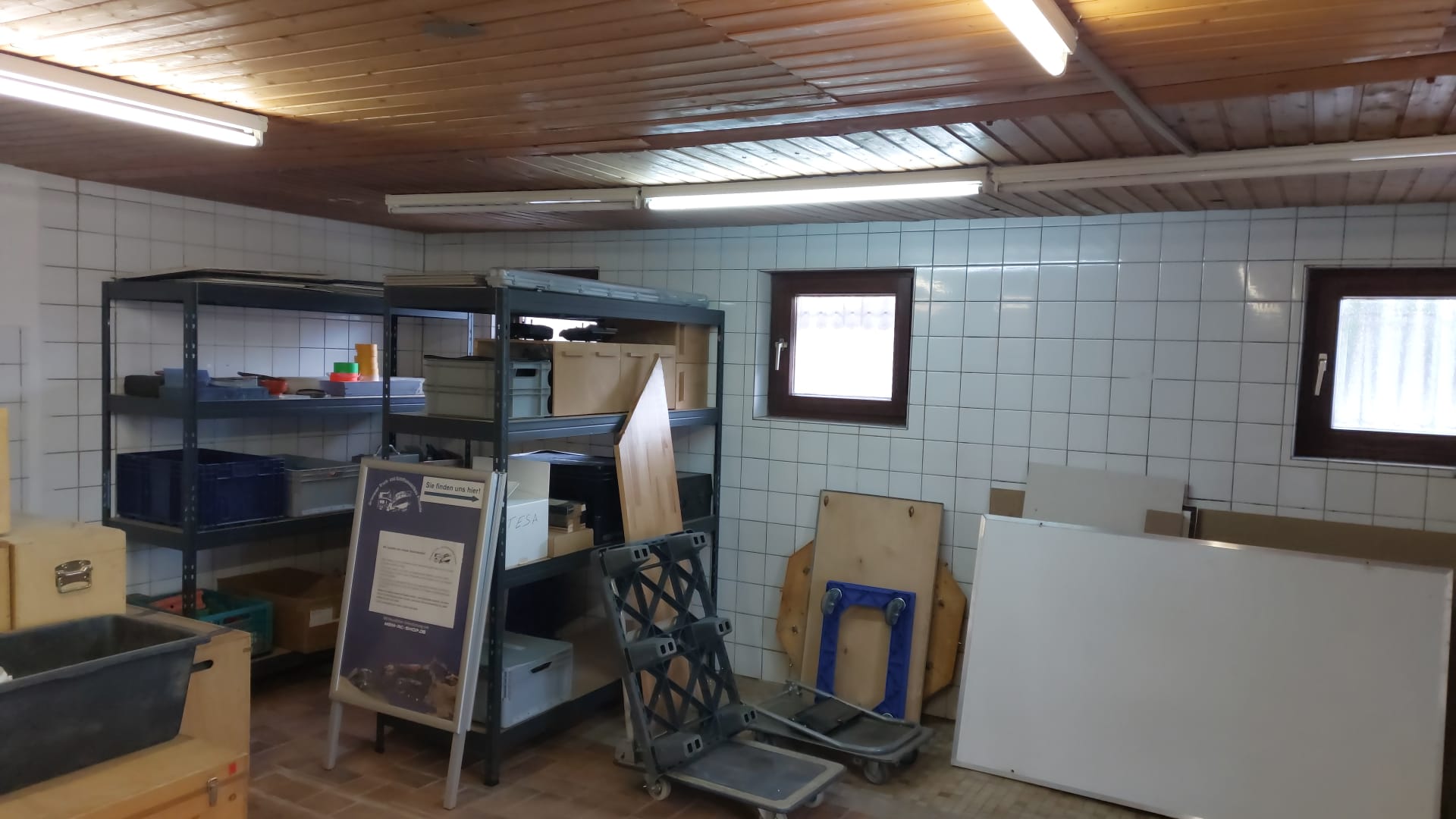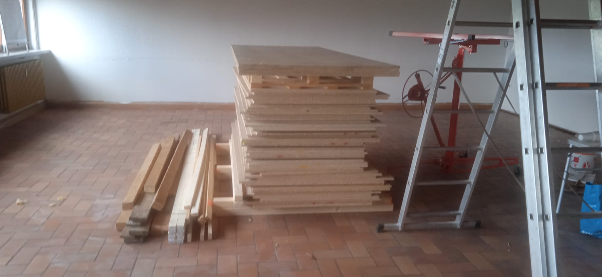 Waren heute wieder aktiv - Küche hat neue Wände, Ausbaumaterial besorgt, Lager für Kinderparcour entsteht, neue Regale und gestrichene Fenster im Materiallager